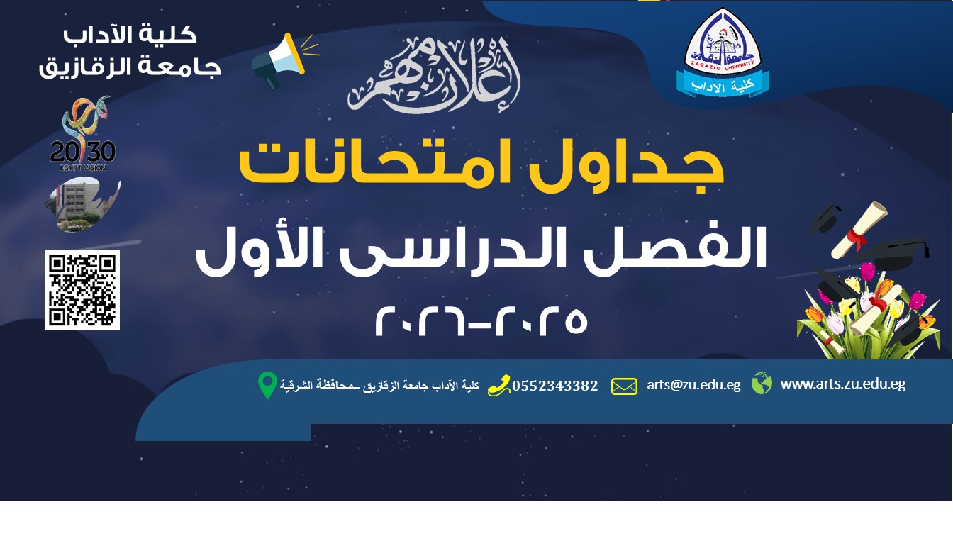 إعلان جداول الامتحانات للفصل الدراسى الاول بكليه الاداب للعام الجامعى ٢٠٢٥-٢٠٢٦.